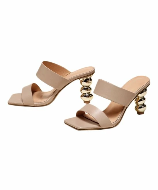 Budget ✔️ PAOTMBU Apricot Square-Toe Double Strap Stacked Heel 🩴 Sandal – 👩 Women ⭐