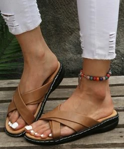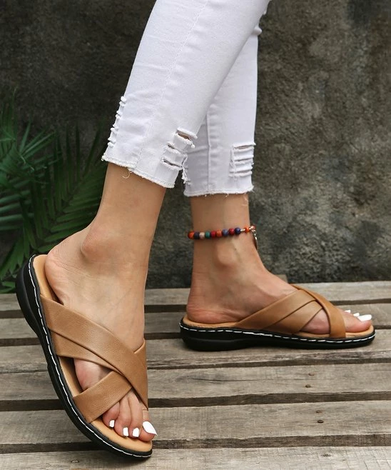 These versatile slides feature a double crisscross-strap detail and a sturdy rubber sole.