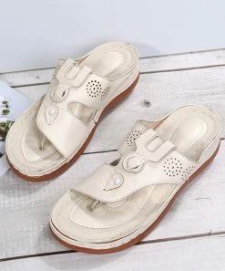 Brand new ❤️ PAOTMBU Beige Perforated 🩴 Sandal – 👩 Women 😍