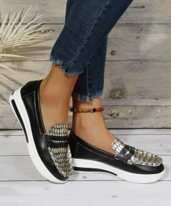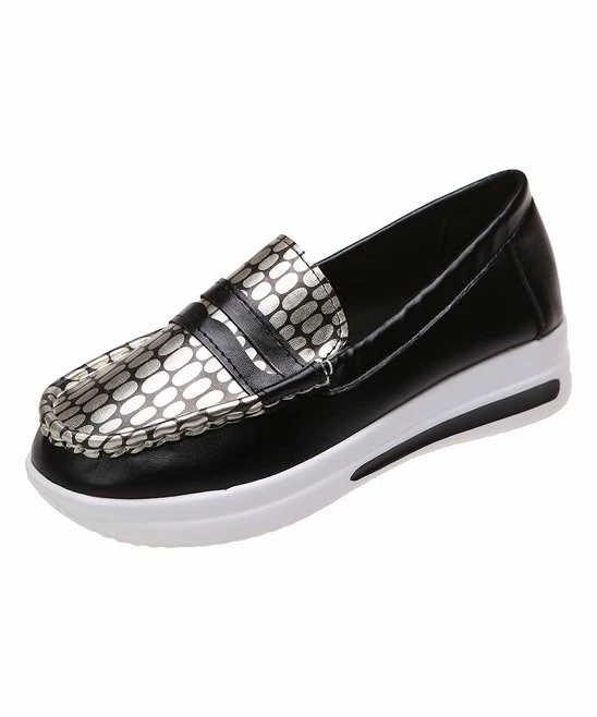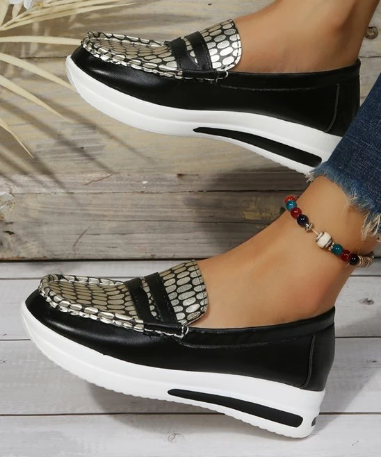 These loafers have a metallic upper print and soft elastic rubber sole.
