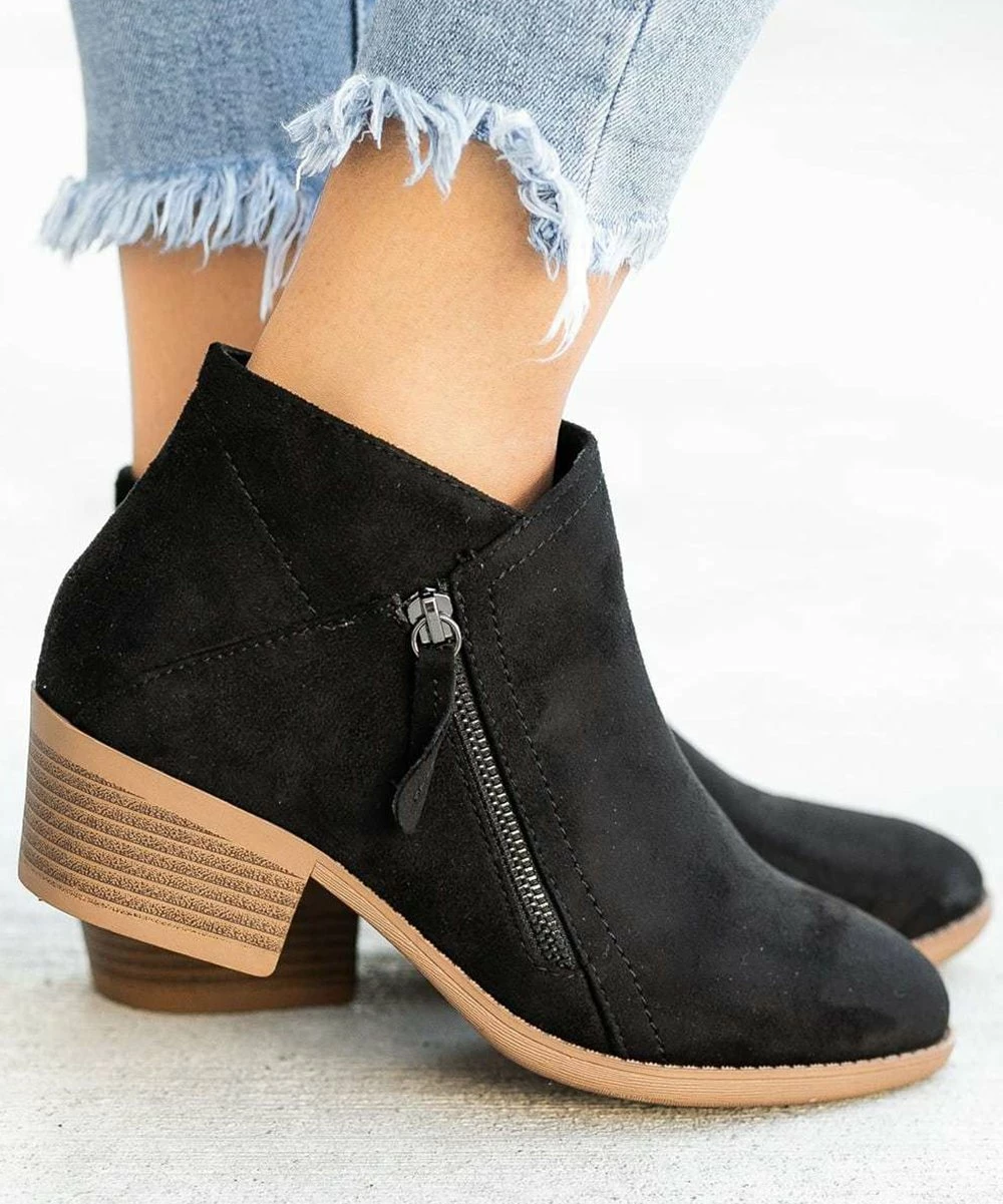 Step out in style with these trendy ankle boots designed with a low stacked heel and faux suede exterior for a sophisticated look.