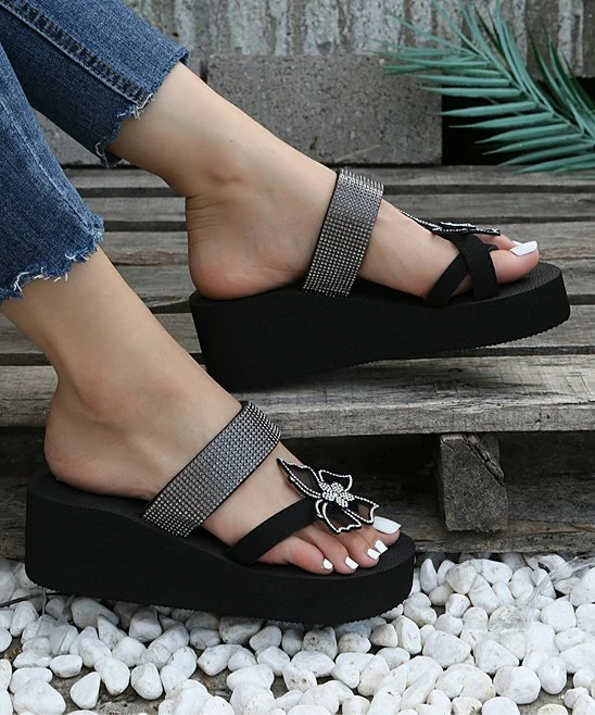 Refresh your warm-weather style with these playfully embellished sandals that feature a chunky wedge heel for an elevated touch.