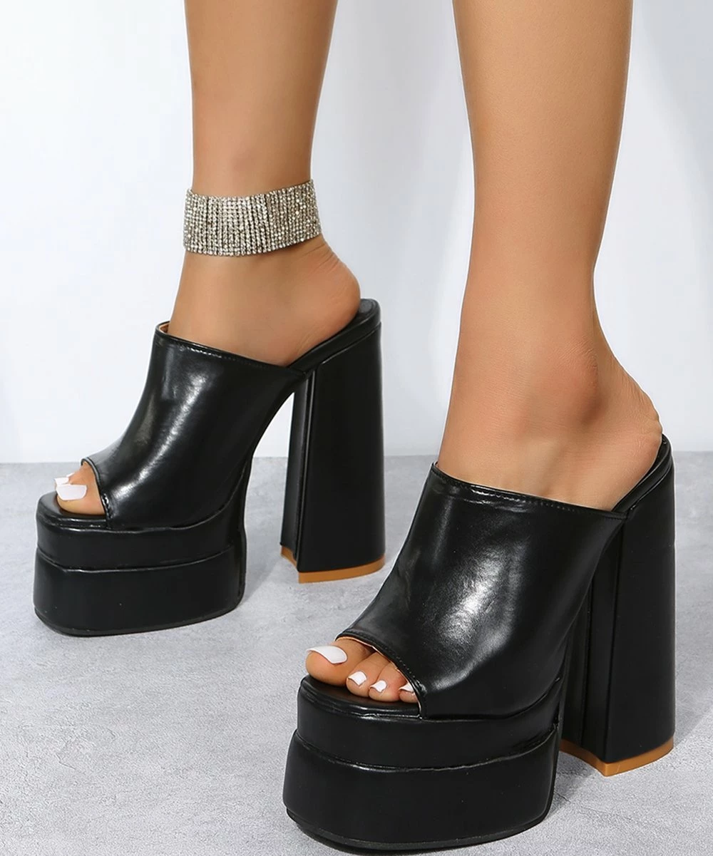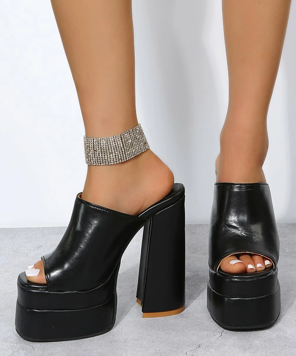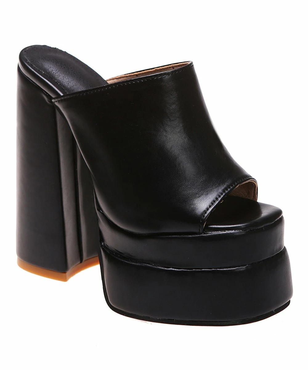 This lavish platform sandal features a high-rise block heel that dramatically elongates your look while elevating your chic style. Finished with a subtle peep toe design.