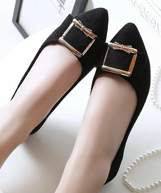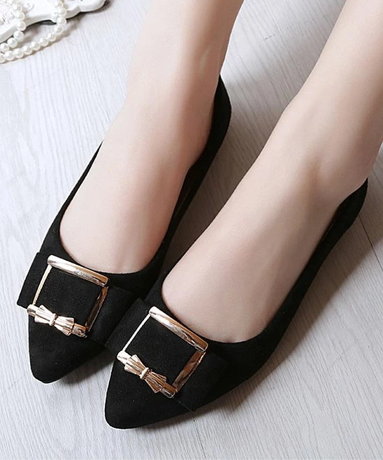 From work to the weekend, this classic pointed-toe flat with a dainty bow-accented buckle can complete a variety of outfits. Crafted with a breathable, elastic rubber sole.