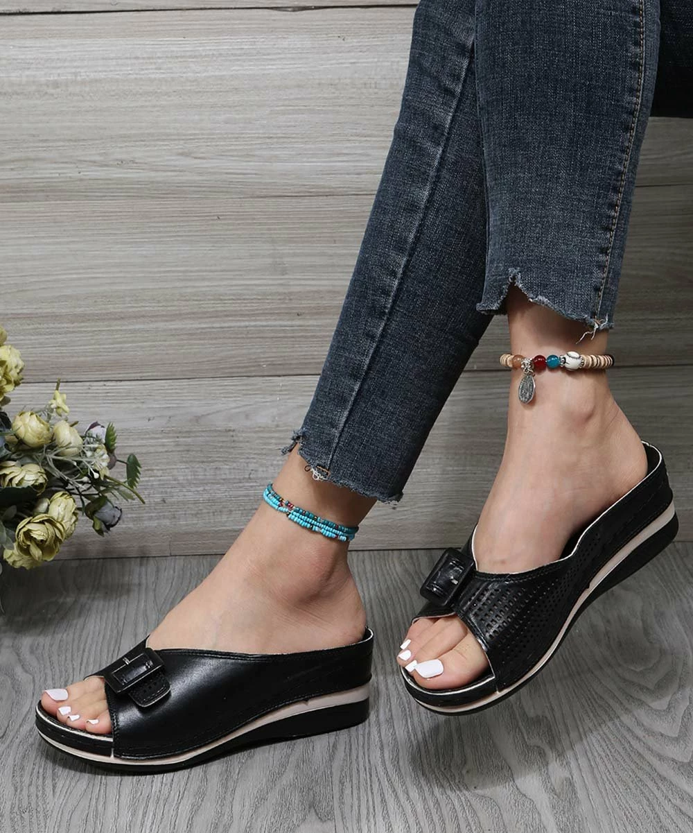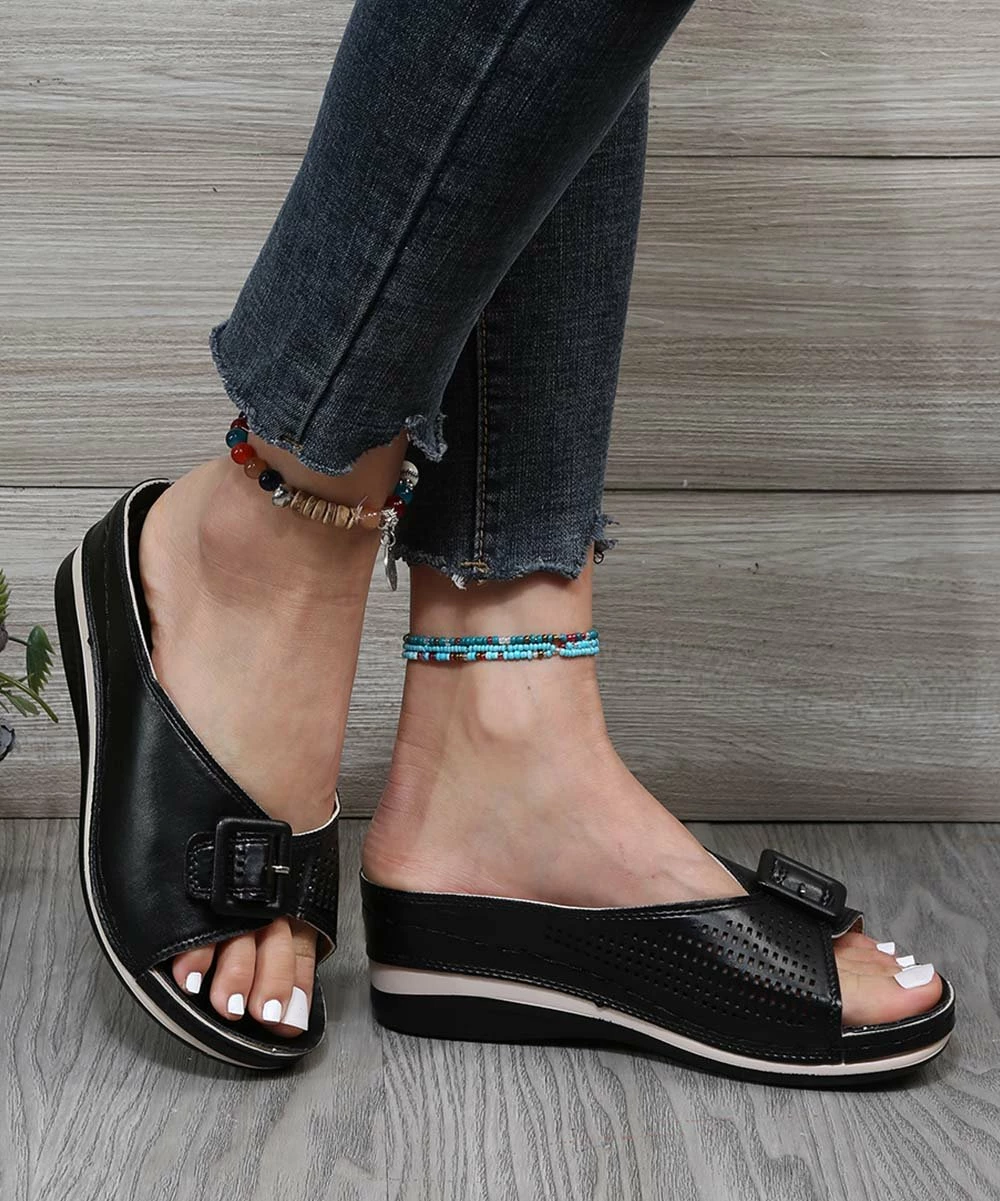 This low-heel slide’s buckled accent adds flair to your casual-chic look while its ventilated design ensures premium breathability all day long, making it your go-to on a warm, sunny day.