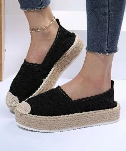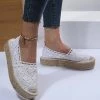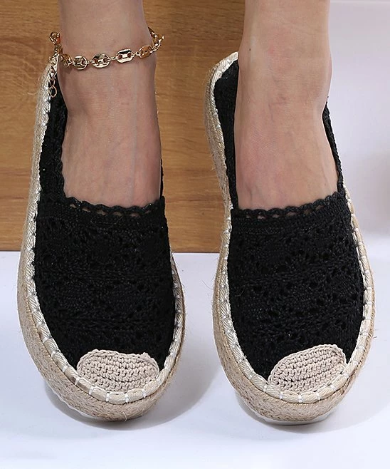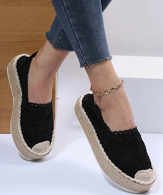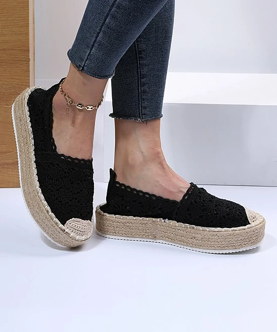 Crochet and scalloped details complement the braided espadrille platform of this romantic alpargata flat.