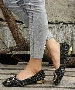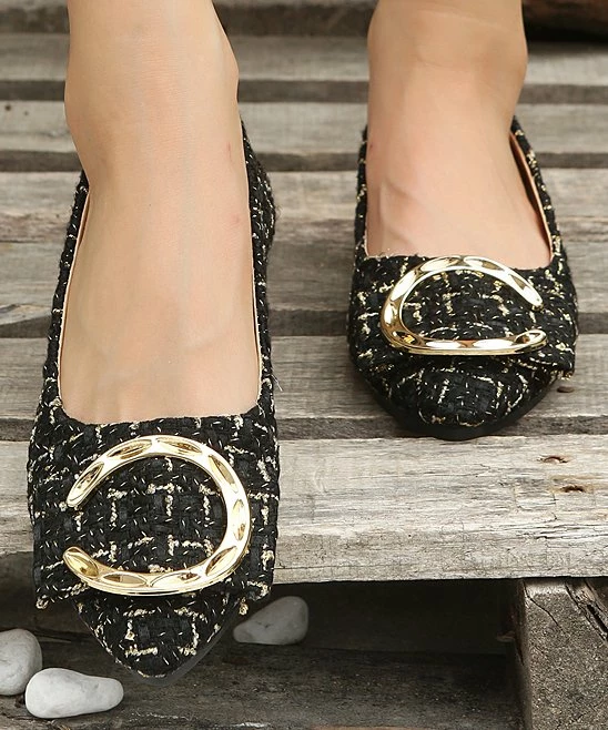 Deals ๐Ÿ‘ PAOTMBU Black & Goldtone Buckle Flat – ๐Ÿ‘ฉ Women ๐Ÿ˜€