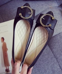 Promo โญ PAOTMBU Black Horseshoe Buckle-Accent Pointed Toe Flat – ๐Ÿ‘ฉ Women ๐ŸŽ