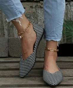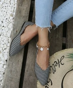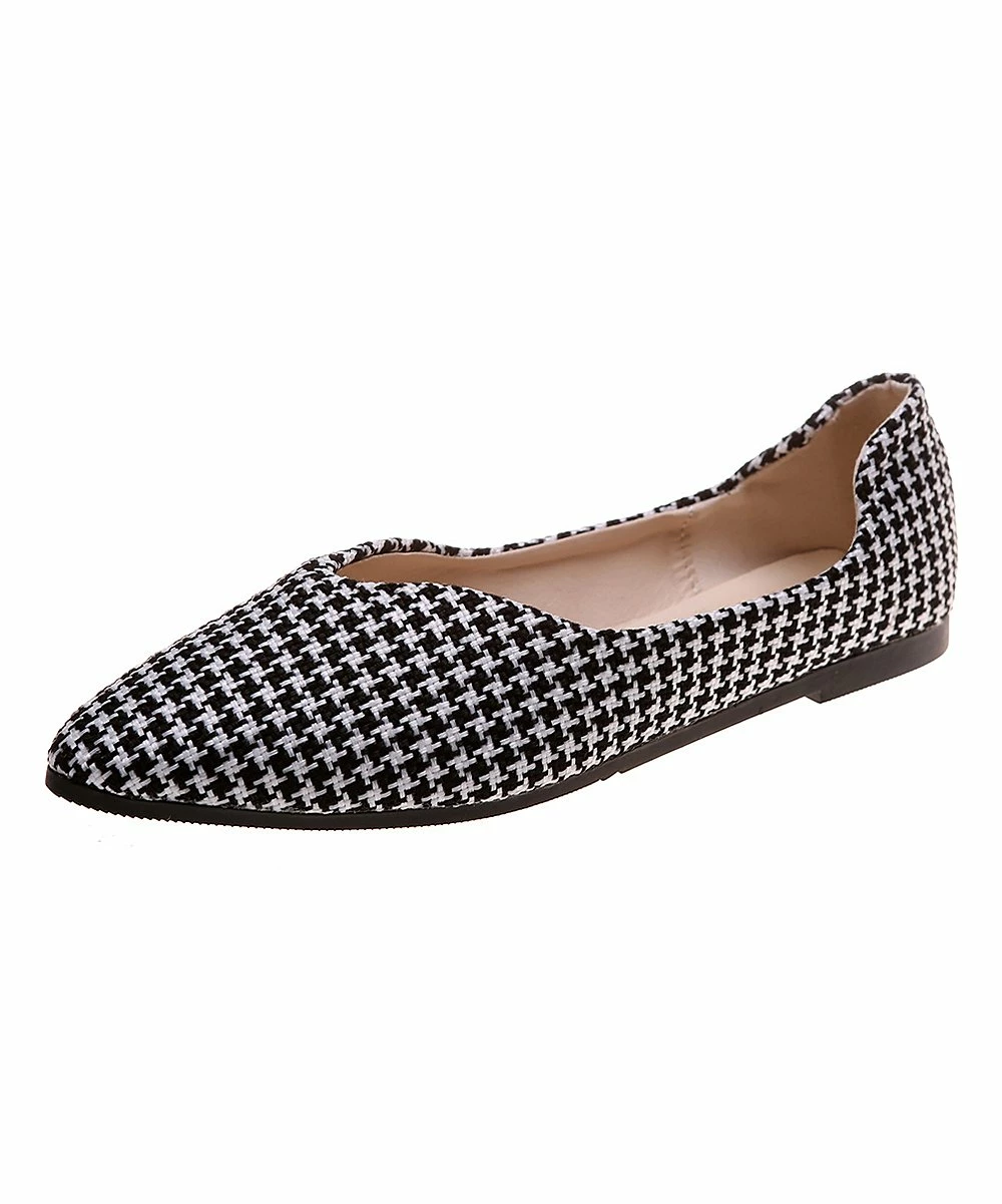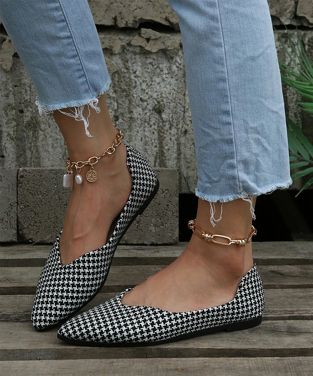 A classic houndstooth pattern gives personality to this pointed-toe flat made with soft and breathable materials.