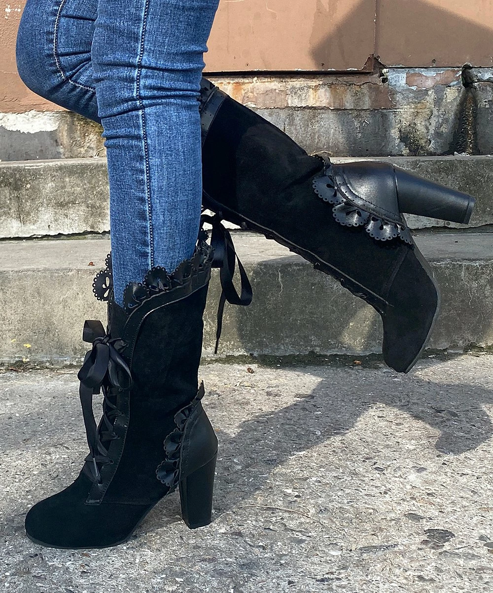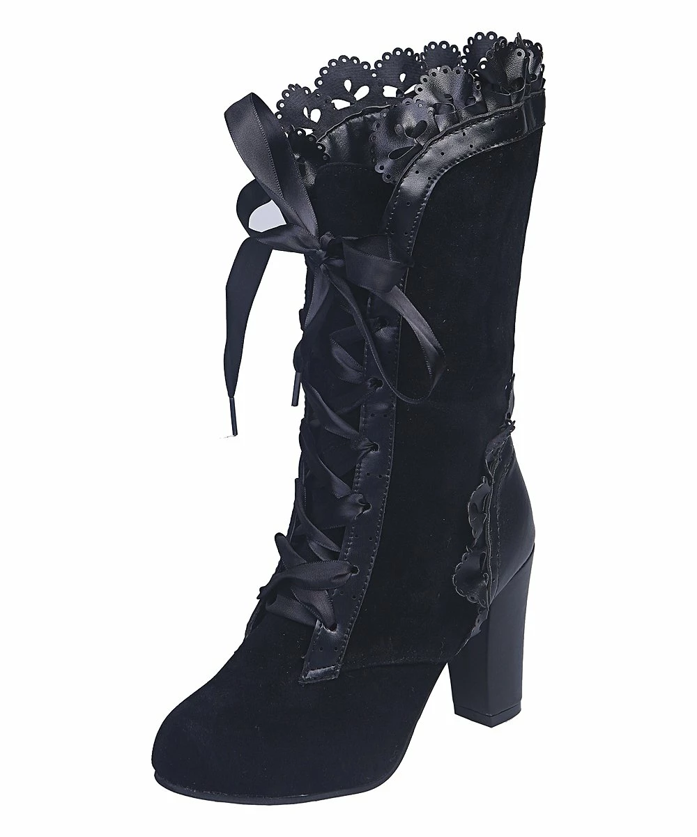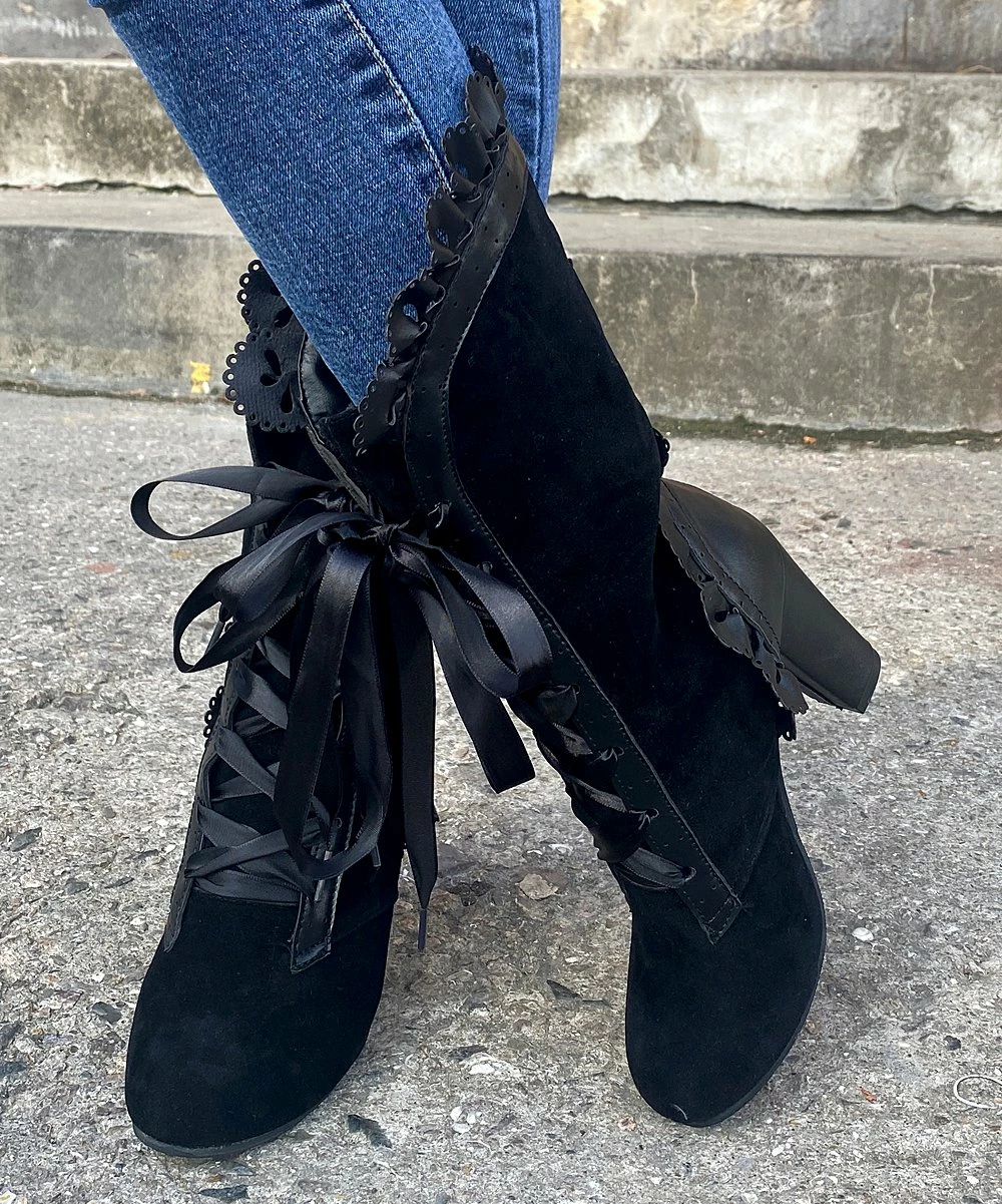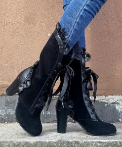 Festooned with dainty lace and secured with a ribbon, this flirty boot makes an enchanting impression no matter the occasion.