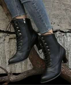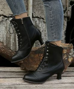 This classic lace-up ankle boot with subtle broguing brings a Victorian look to your footwear collection.