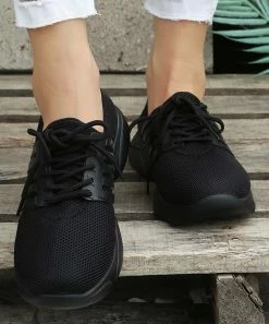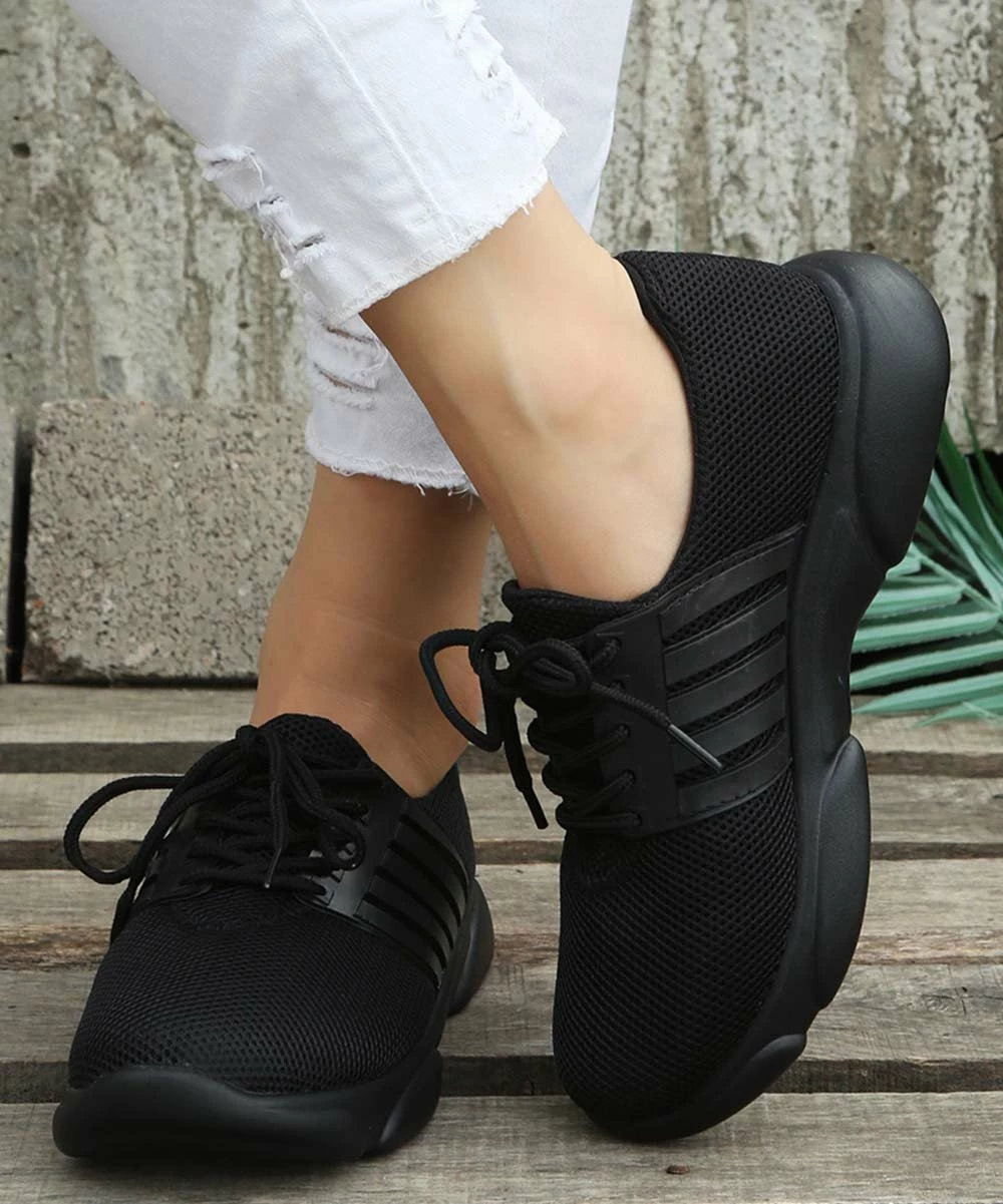 These breathable sneakers have a mesh upper and stripe accent sides.