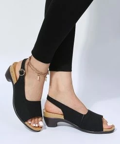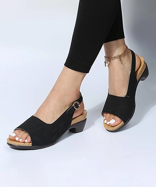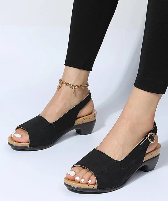 With a peep-toe design and adjustable ankle-strap, this slingback keeps your feet comfortable and secure.