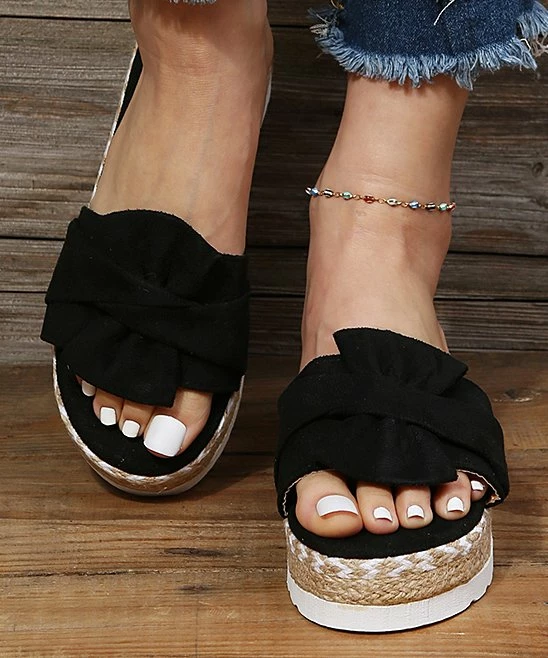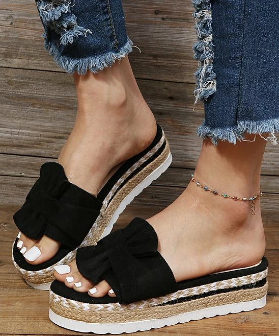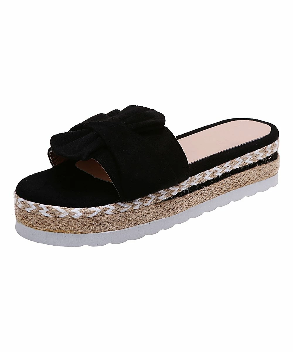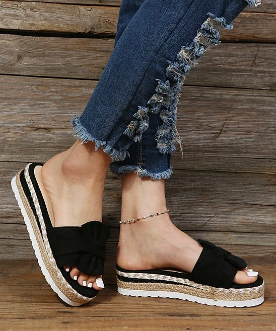 The braid-wrapped platform sole and sideways bow strap of this chunky sandal making dressing up or down a breeze.