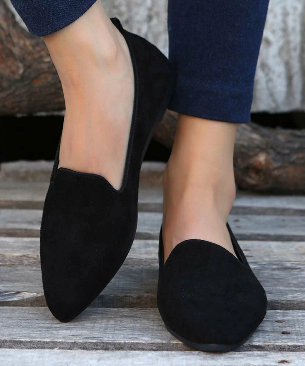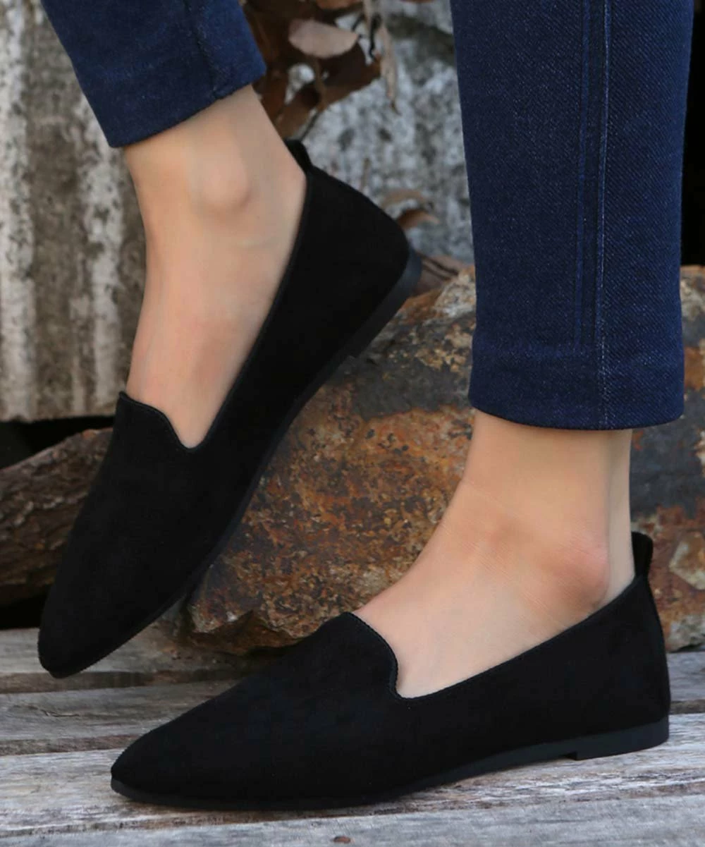 Complete your collection of casual footwear with these slip-on flats that feature stylish pointed toes.