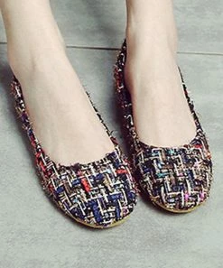 From work to the weekend, this rounded-toe flat with a colorful and textured finish can complete a variety of outfits. Crafted with a breathable, elastic rubber sole.