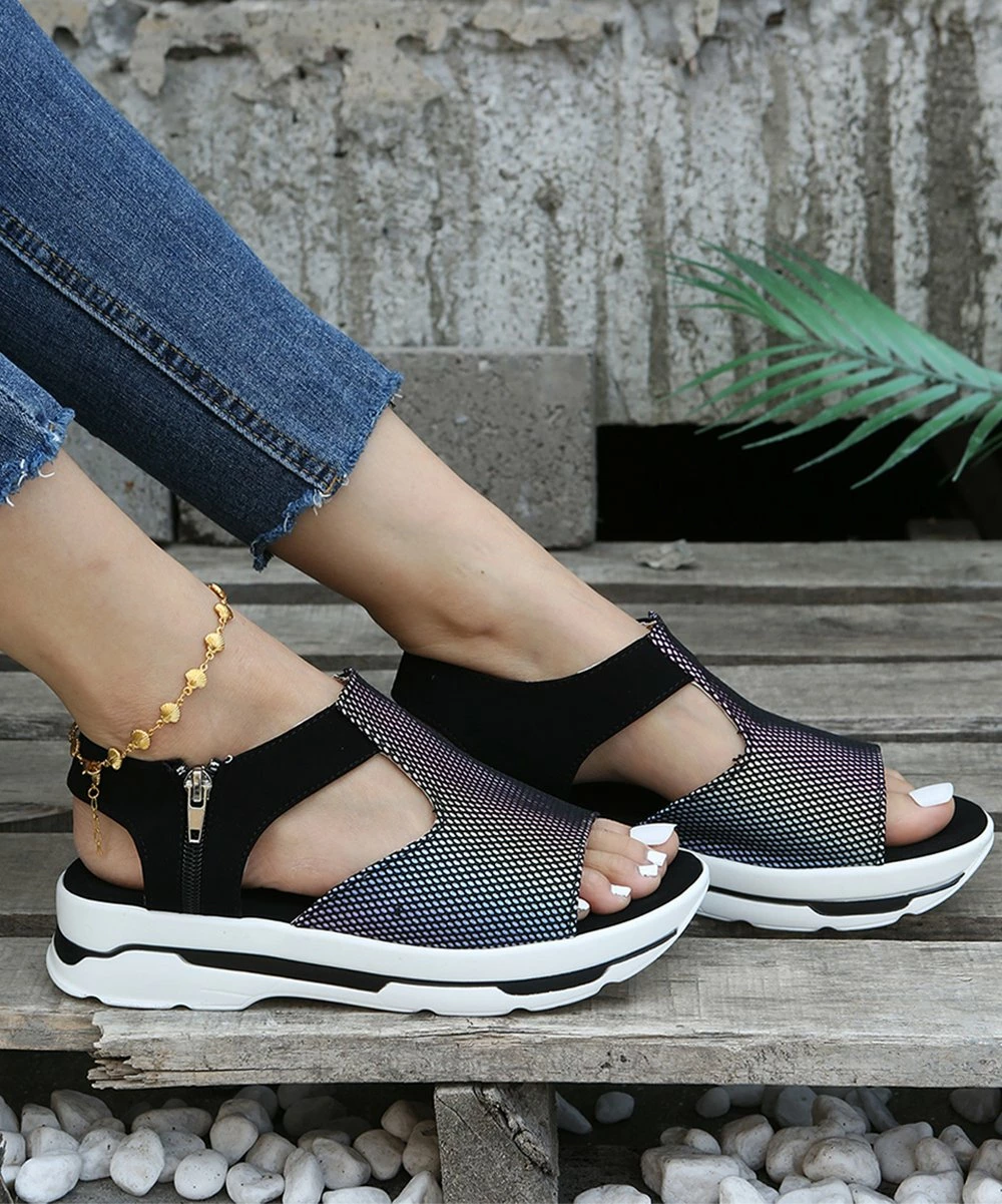 Showcase your sporty side with these trend-driven sandals featuring a slight platform to elevate your look.