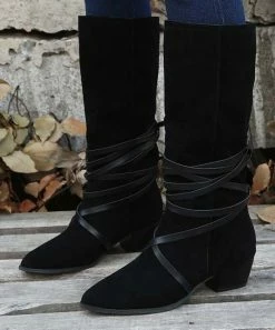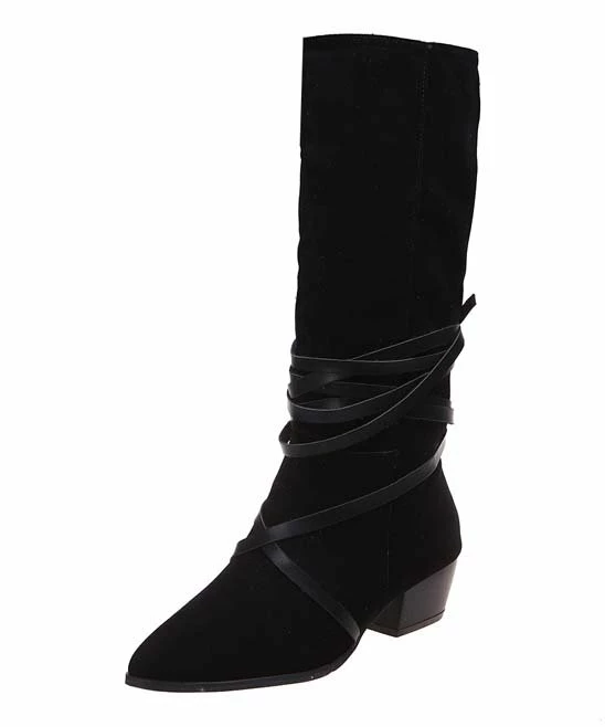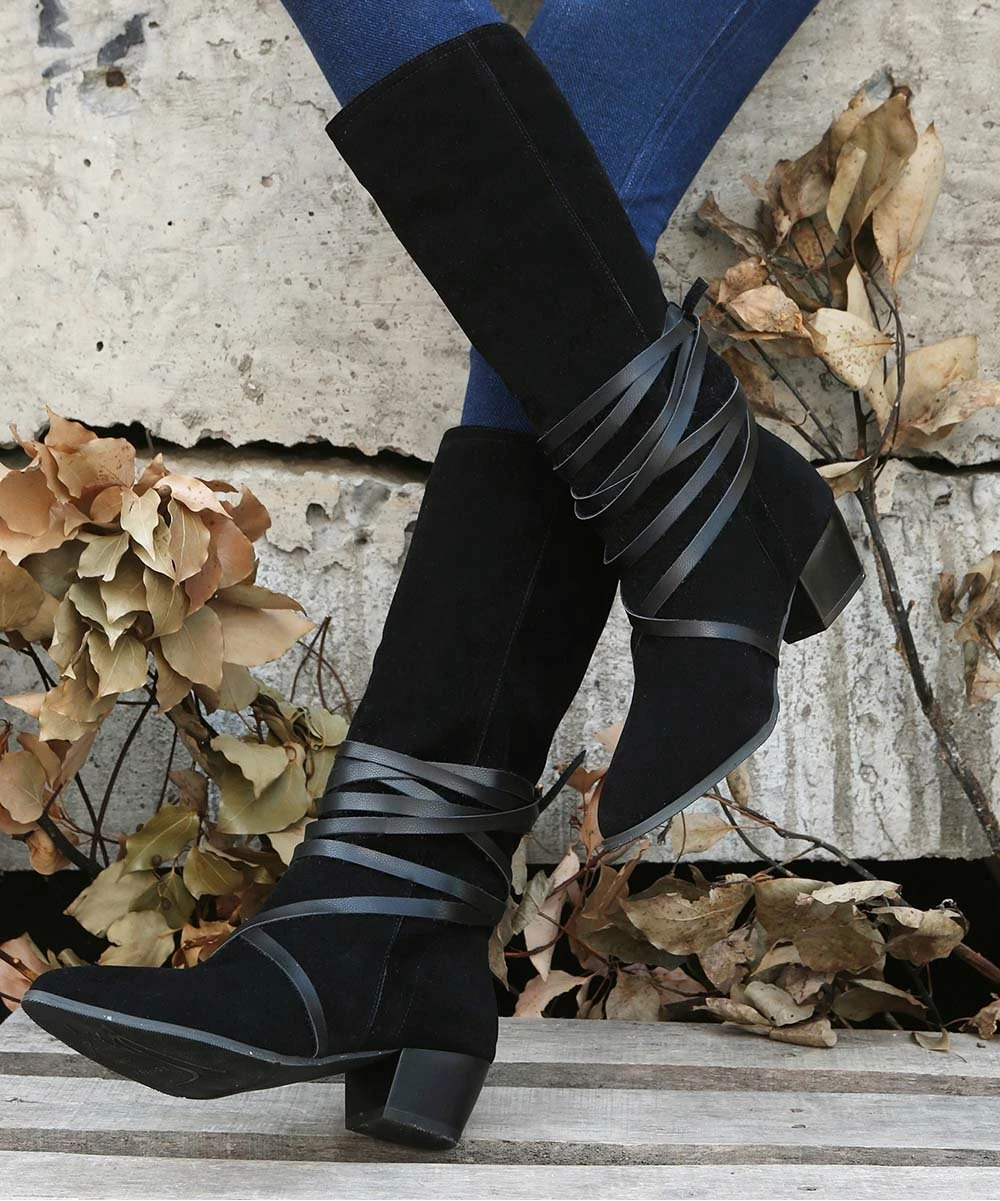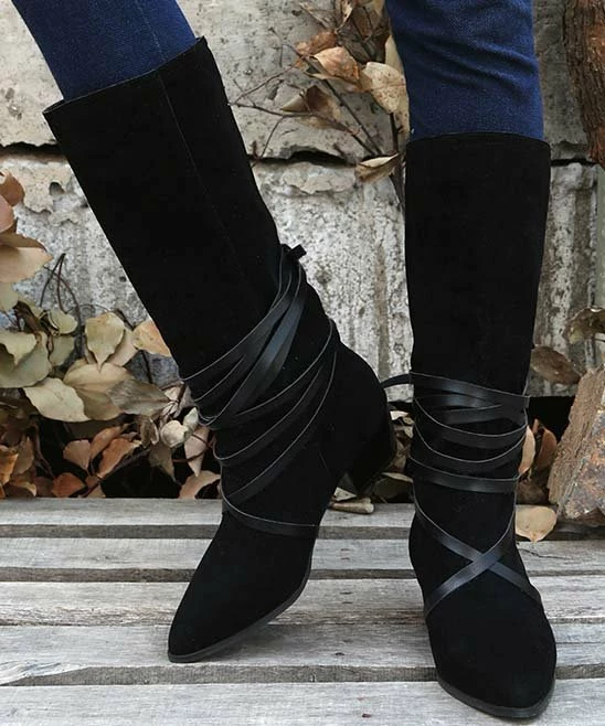 Strappy detail adds a trend-right touch to these cozy boots featuring a block heel to elevate your style.