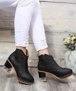 Outlet 👍 PAOTMBU Black Studded Cowboy Ankle Boot – 👩 Women 🥰