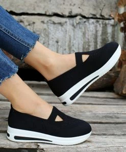 A wedge heel and T-strap design add a touch of elegance to these versatile sneakers.