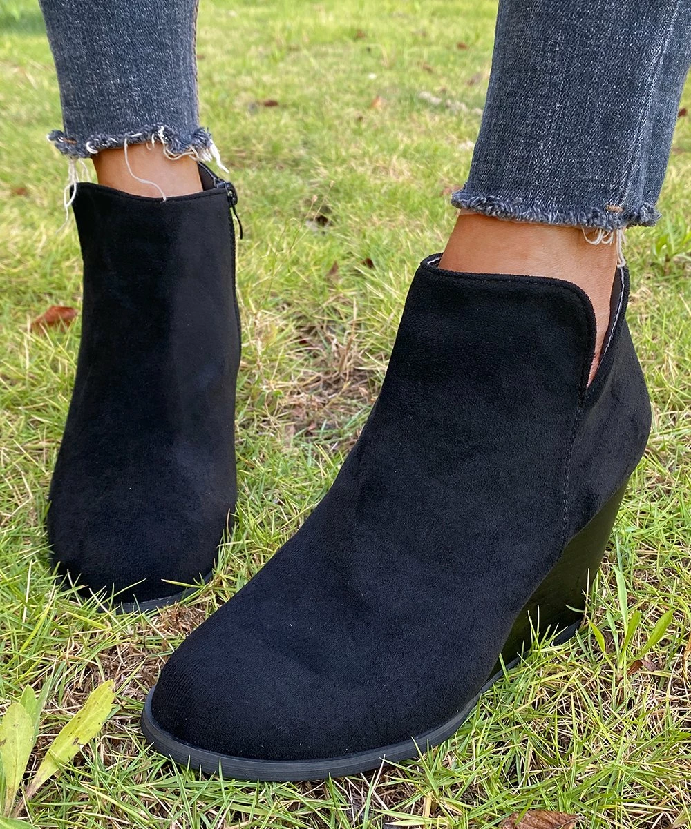 Add a fierce pop of height to your look when you complete them with this pair of booties boasting a wedge design.