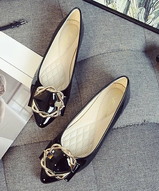 Slip on these sophisticated flats featuring a pointed-toe design and elegant buckle accent.