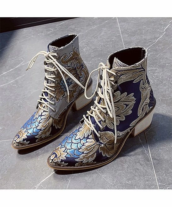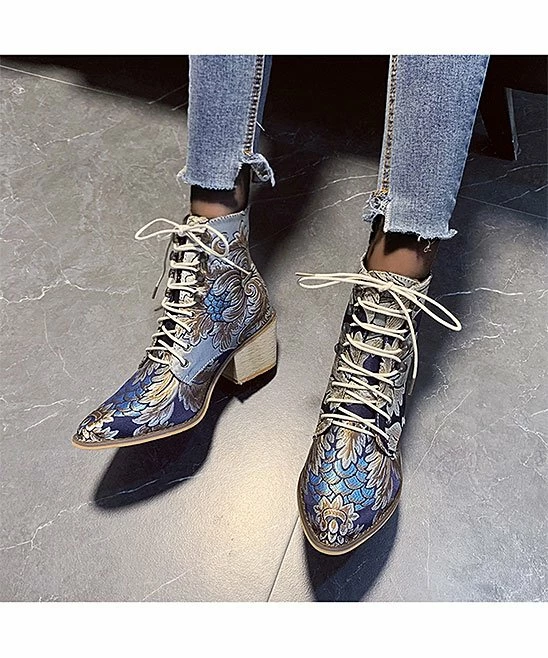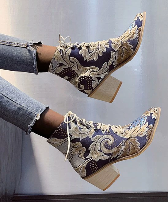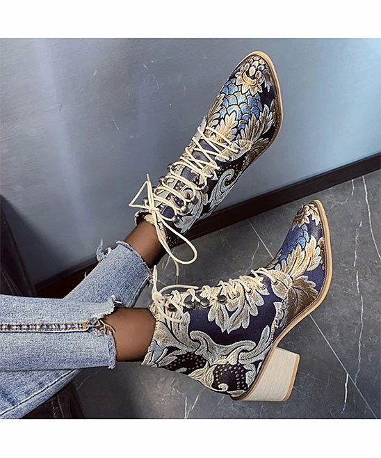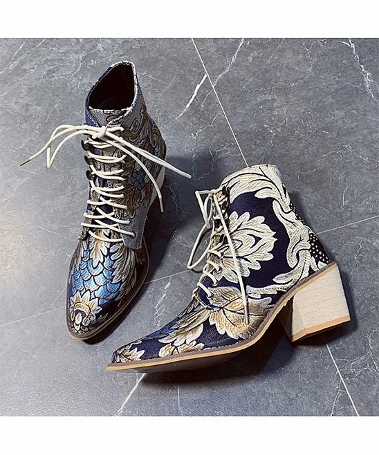Embroidered floral detail adds creative texture to this ankle boot fashioned with just-right lift in the heel to elevate your ensemble.