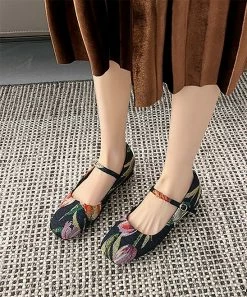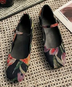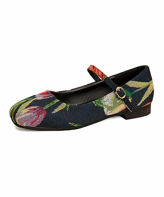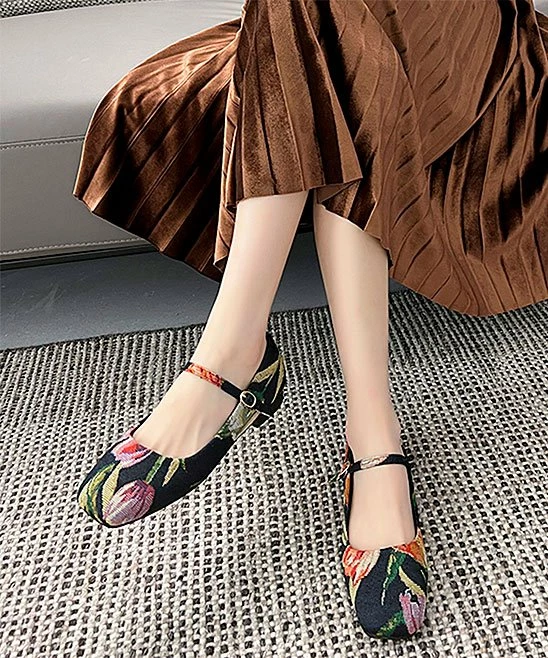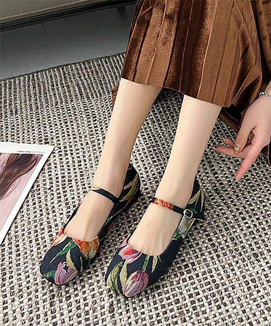 Add a fresh touch to each step in these pretty floral mary janes featuring a comfortable fit.