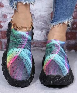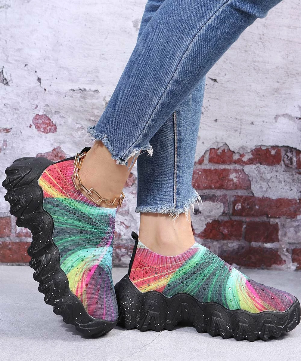 Upgrade your essential footwear rotation with this comfy pair that boasts a slip-on silhouette with a vibrant design and a durable rubber sole.