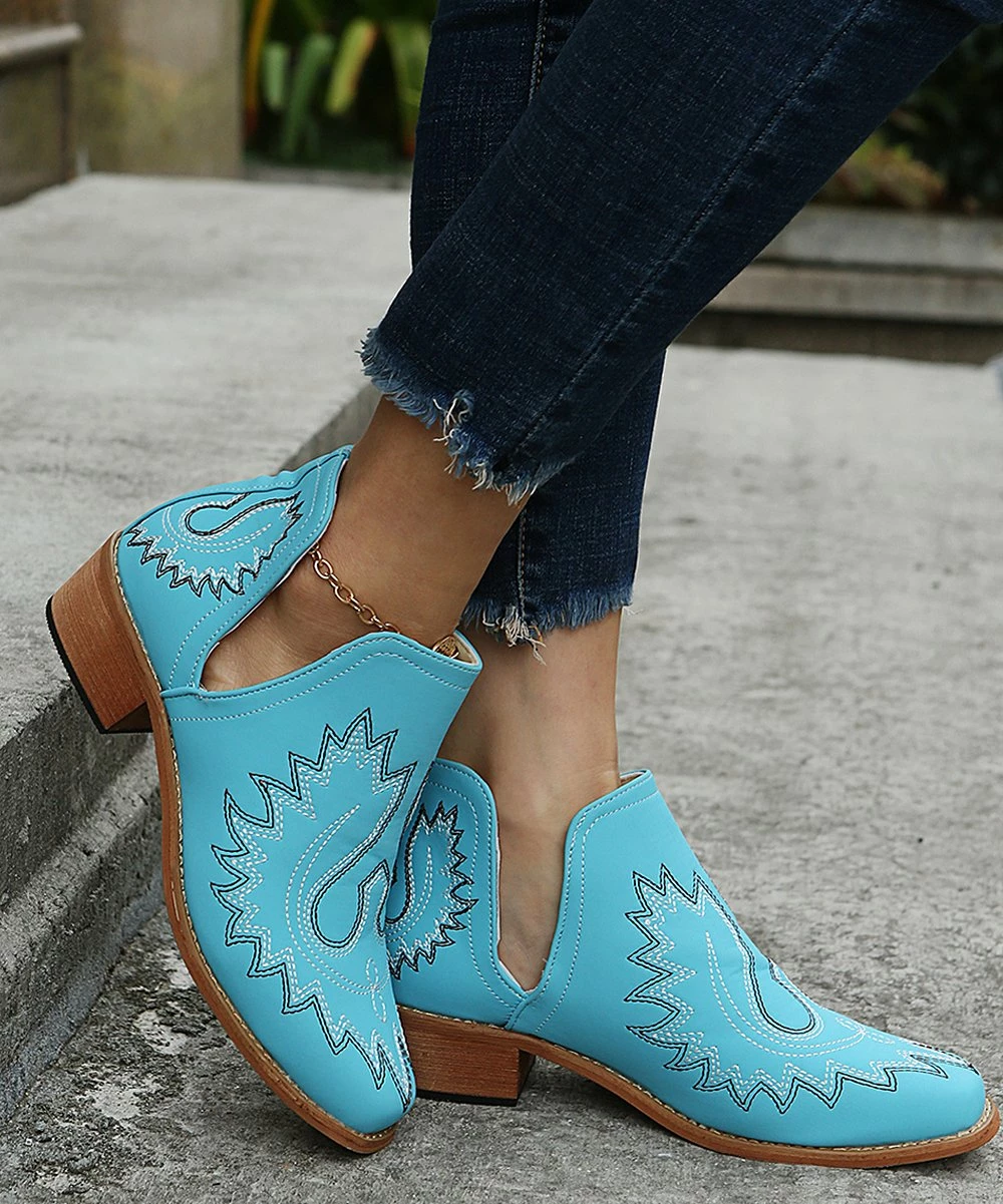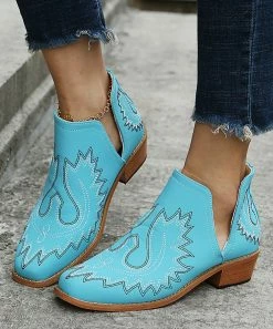 Cheapest ✔️ PAOTMBU Blue Western Cutout Ankle Boot – 👩 Women ⭐