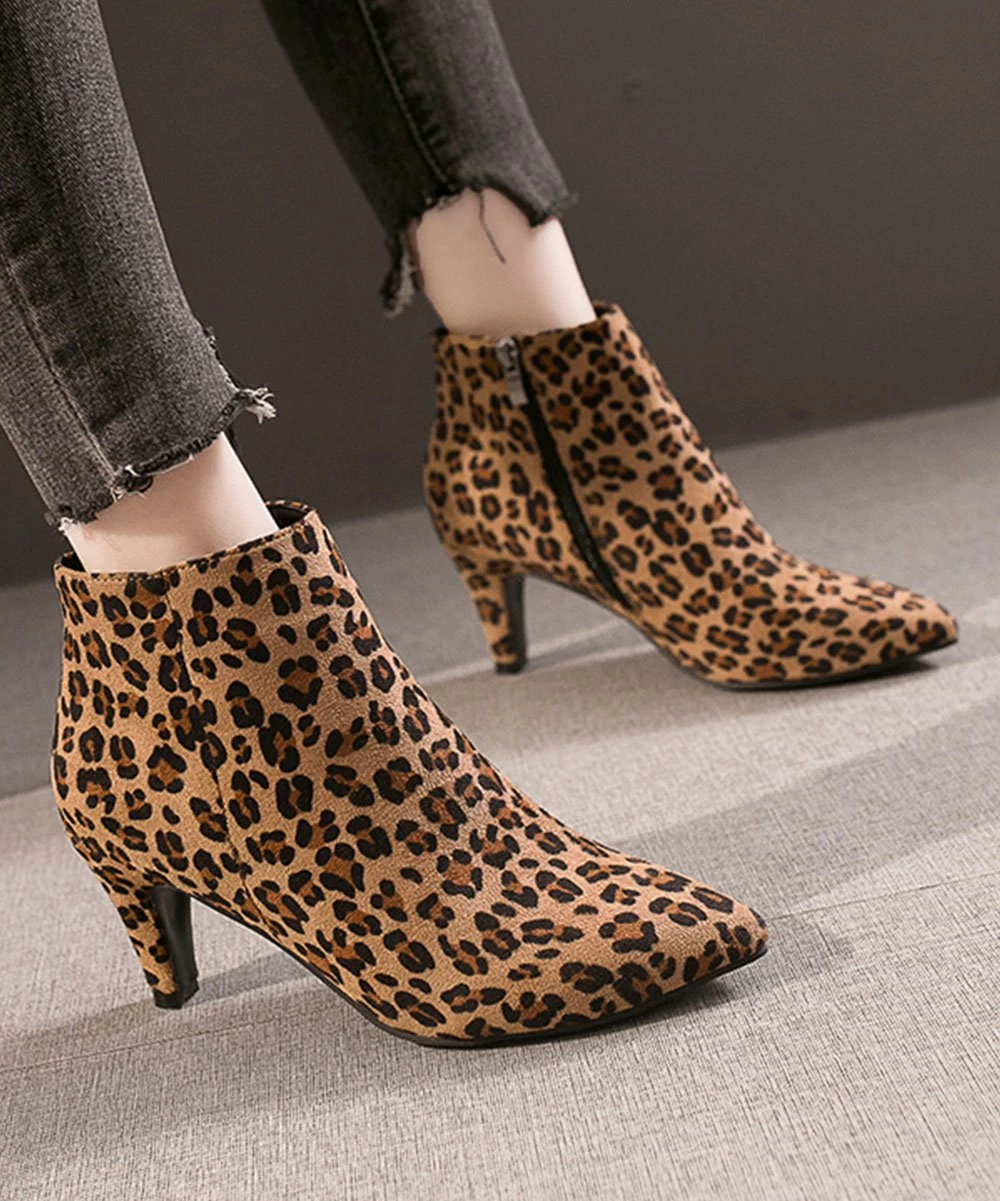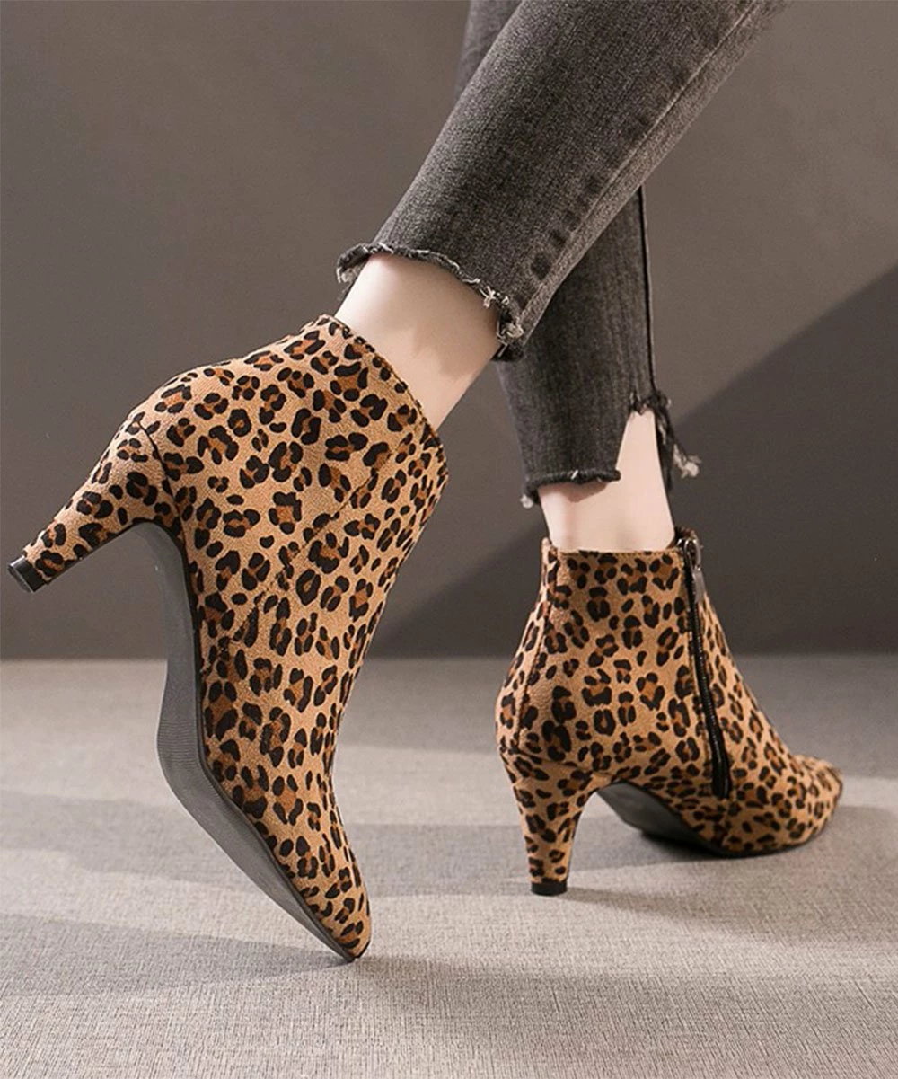 Refresh your shoe collection with these chic ankle boots boasting easily matched hues and a fierce leopard motif.
