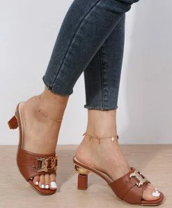Cheapest ๐Ÿ”” PAOTMBU Brown & Goldtone Chain-Bit ๐Ÿฉด Sandal – ๐Ÿ‘ฉ Women โญ