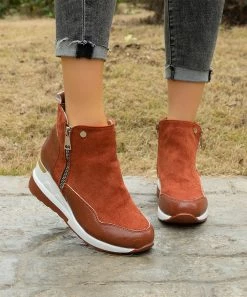 Take your athleisure looks up a notch when you slip into this sleek pair of faux suede sneakers boasting a tall wedge heel. Zippers along the side help you easily slip in and out of this pair of shoes.