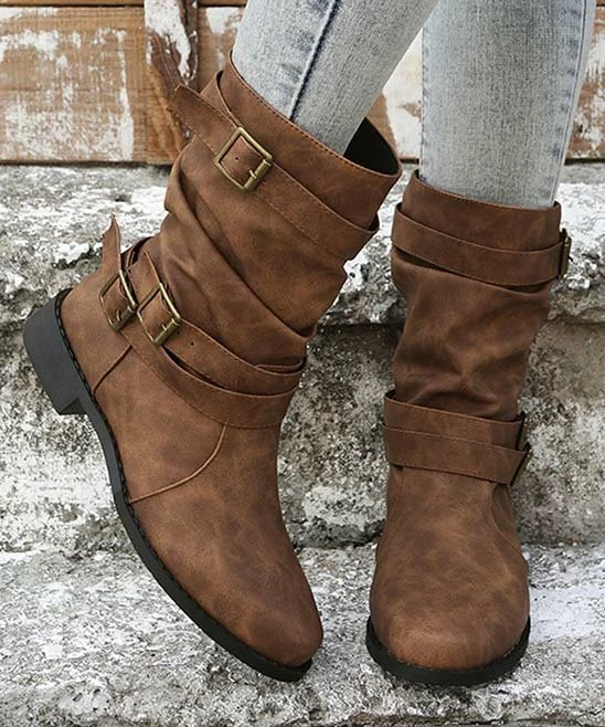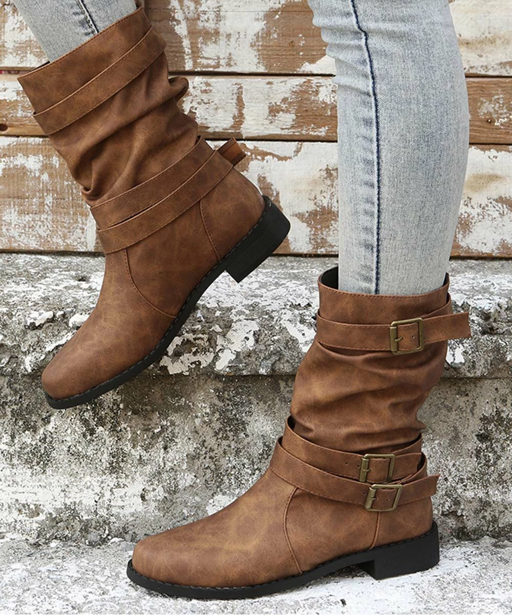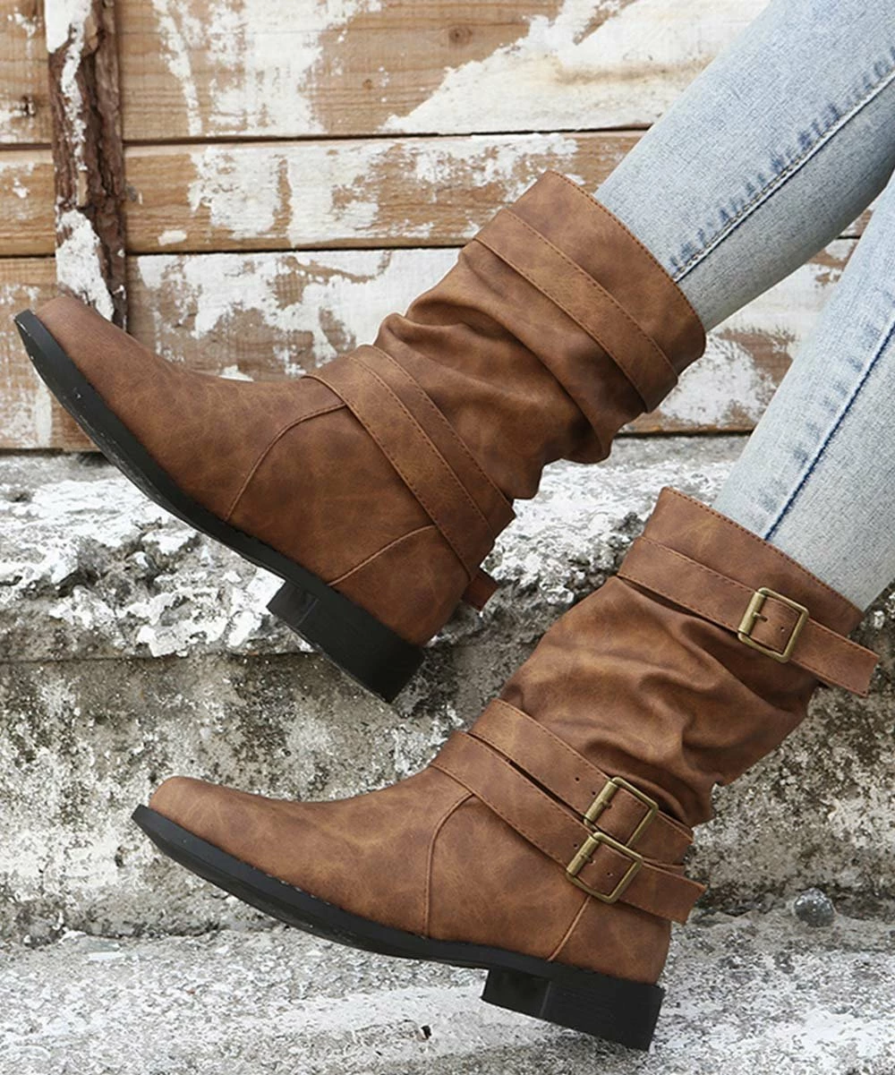 Keep your feet cozy in these laid-back boots featuring a slouchy shaft and buckled strap accents