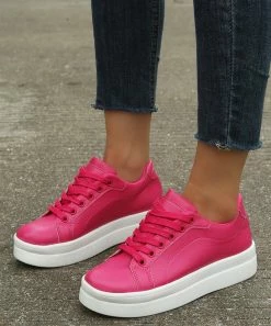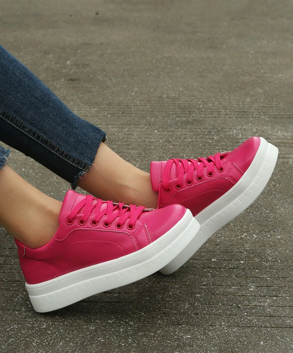 Get a boost of height in these lace-up sneakers outfitted with a platform rubber sole.