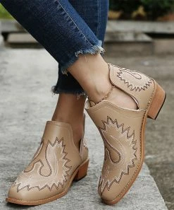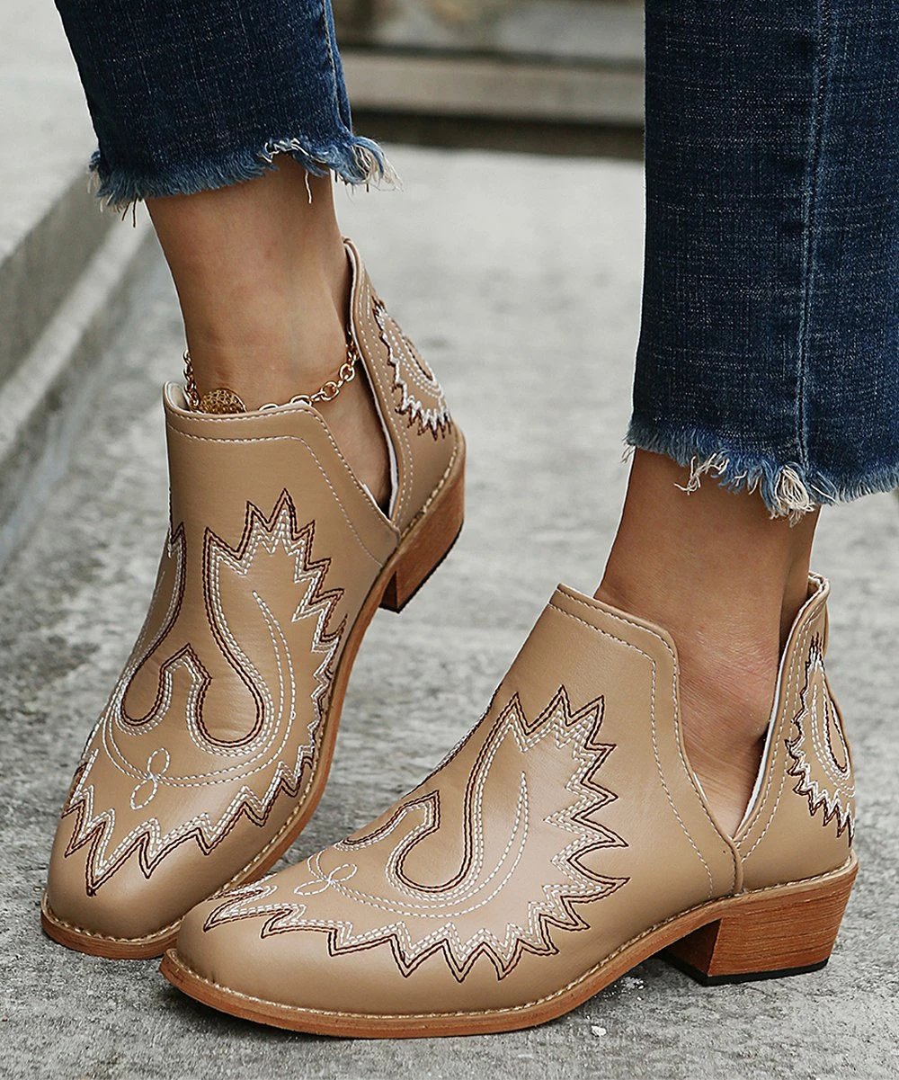 Add instant flair to any outfit with these chic ankle boots that sport a western-inspired design and a sleek V-shaped cutout.