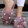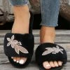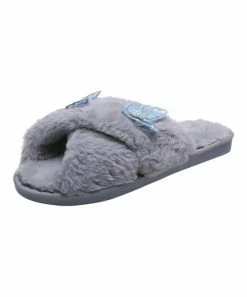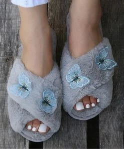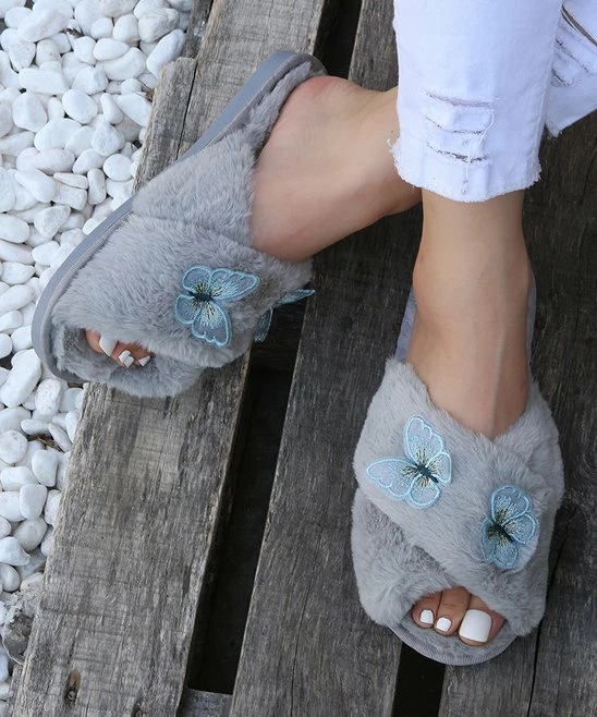 Pamper your feet with these plush slide slippers featuring fun butterfly accents.