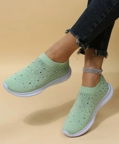 Add some sparkle to your casual footwear collection with this breathable slip-on sneaker boasting rhinestone detailing and a soft rubber sole.
