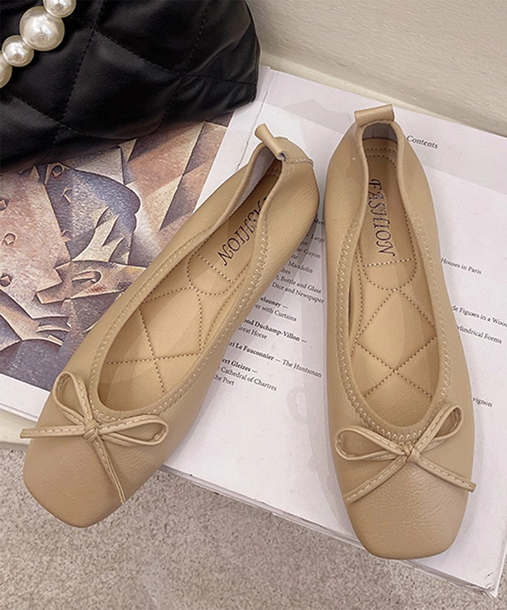 Discount ✔️ PAOTMBU Khaki Knot-Accent Flat – 👩 Women 👍