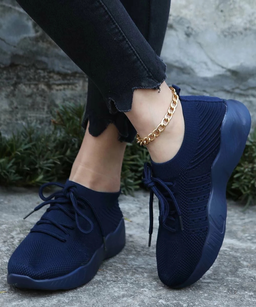 Hit the gym or run a couple of errands in the comfort of these solid-hue sneakers crafted with a breathable knit upper.