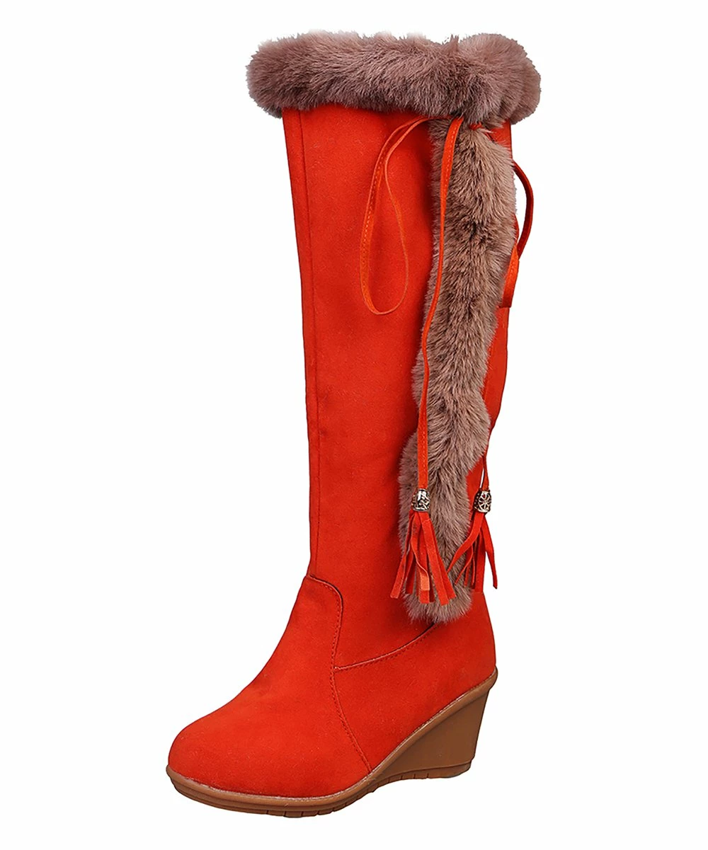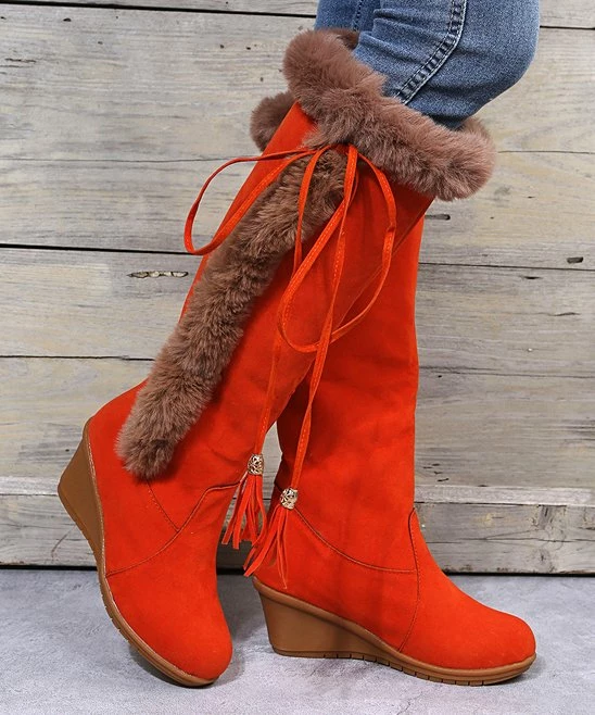 Embellished with plush faux fur and tassel accents for a wintry touch, this wedge boot brings effortless style to your cool-weather collection.