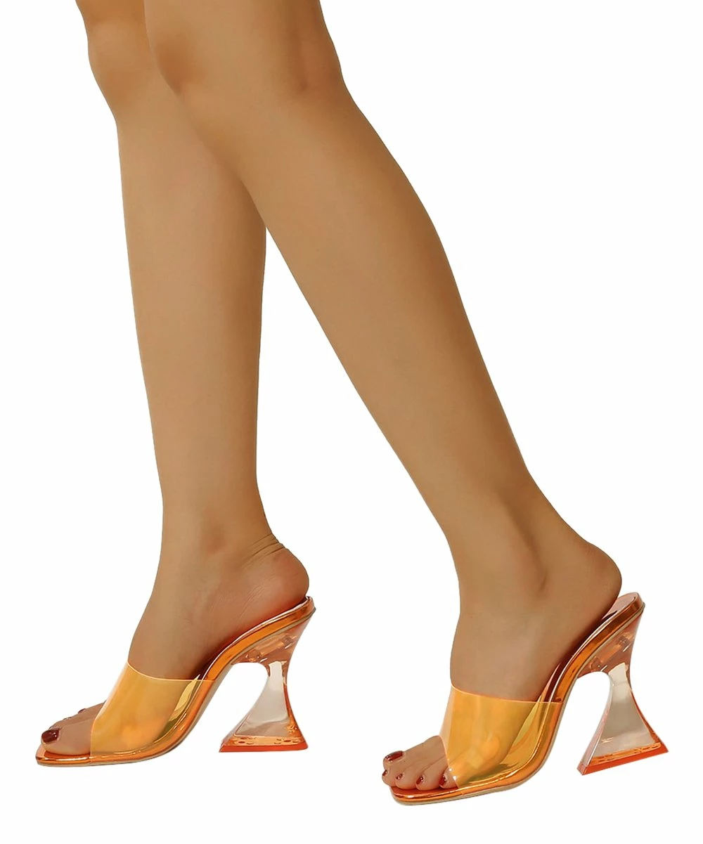 It’s clear to see what makes these sandals unique. The transparent strap and tapered heel have a hint of color that gives them a delightful touch.