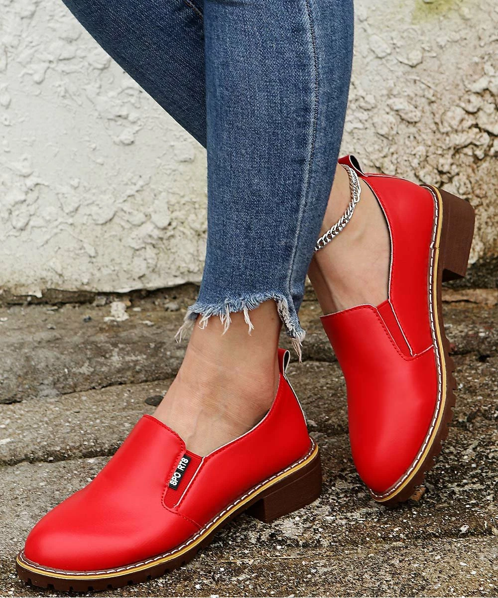Simple and free of frills, this pair of slip-on shoes will be go-to’s in your collection with their solid shade and sturdy stacked heel.