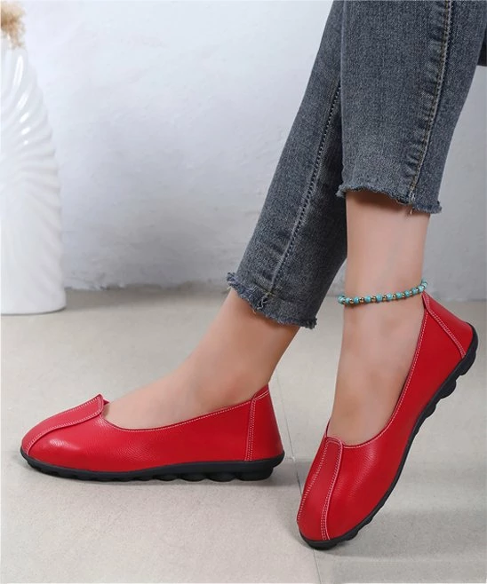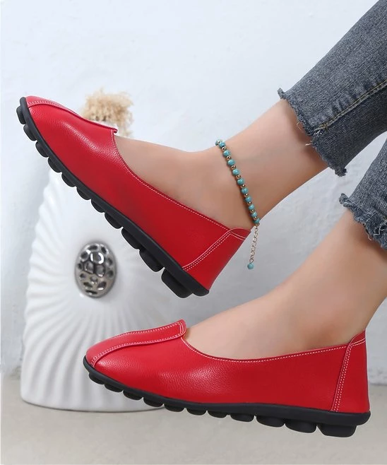 Cheap ๐ŸŒŸ PAOTMBU Red Stitch-Detail Round-Toe Loafer – ๐Ÿ‘ฉ Women ๐ŸŒŸ