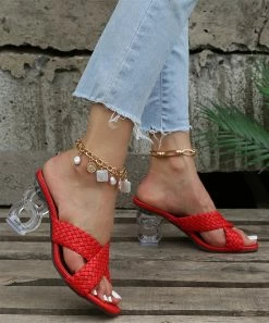 Hot Sale ๐Ÿงจ PAOTMBU Red & Transparent Openwork-Heel ๐Ÿฉด Sandal – ๐Ÿ‘ฉ Women ๐Ÿงจ