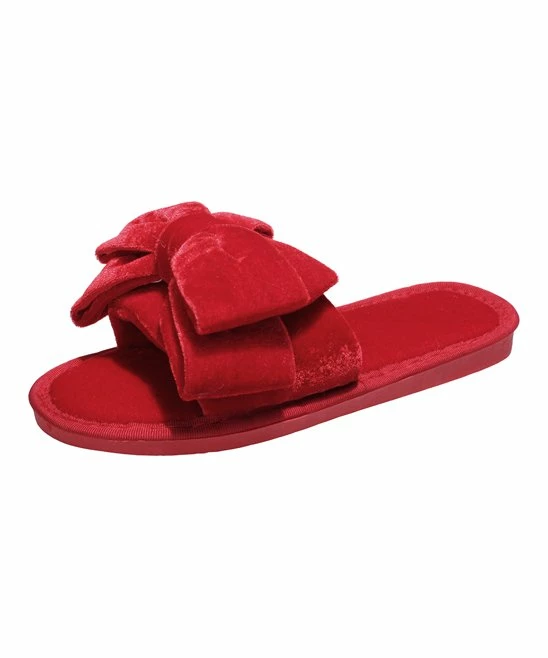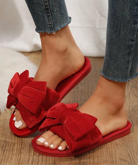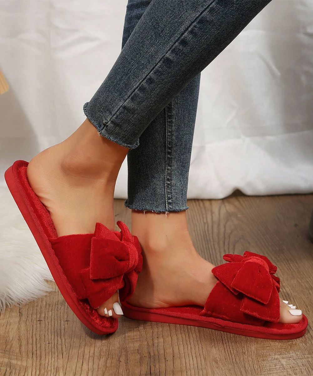 These slippers feature a fuzzy upper, a cute bow accent and a rubber sole.