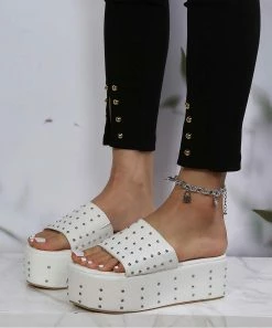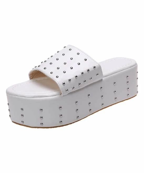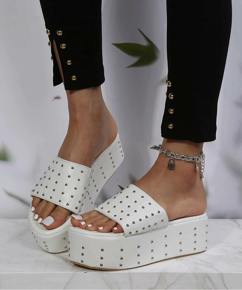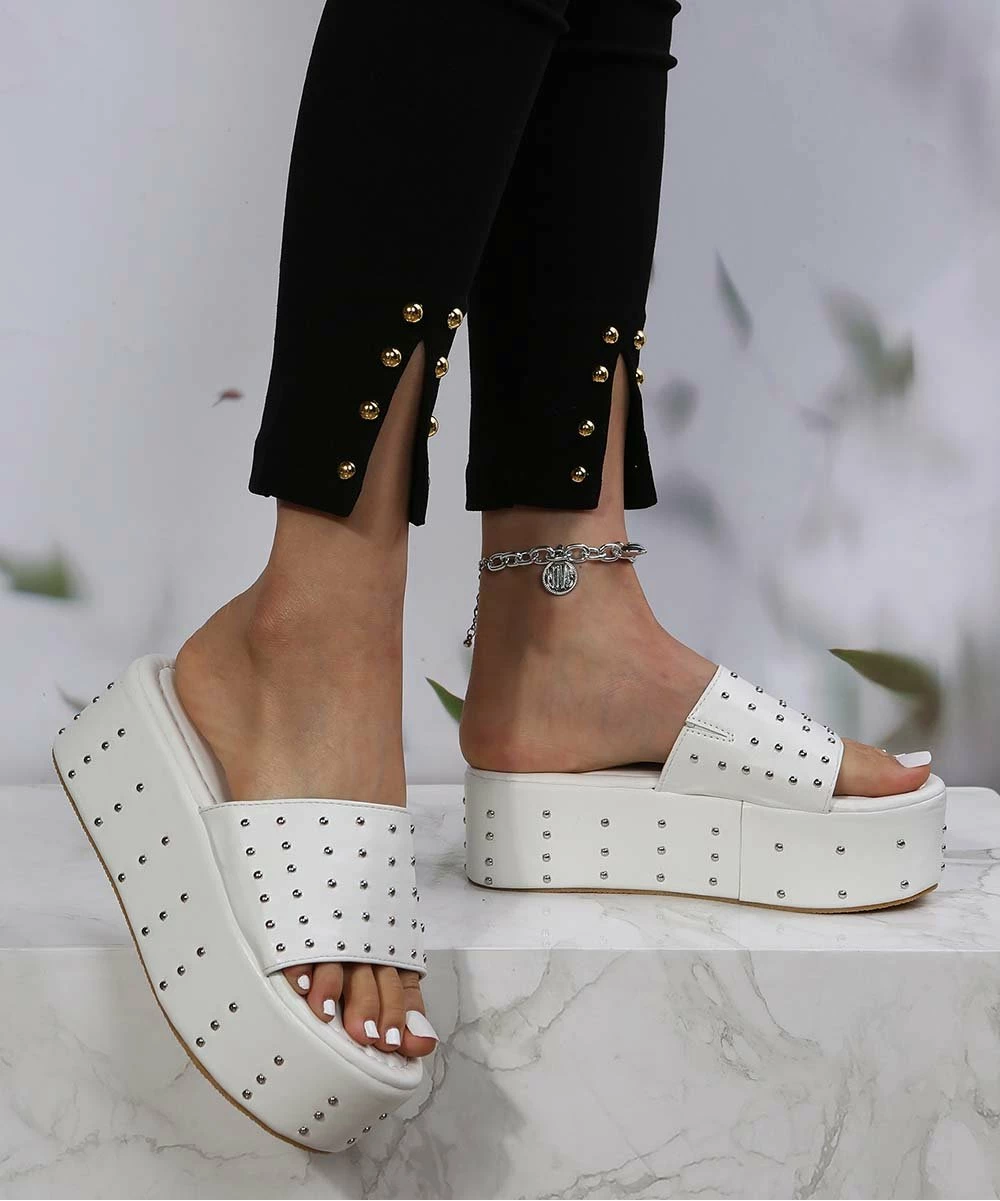 Flash Sale 👍 PAOTMBU White Beaded Platform Slide – 👩 Women 💯
