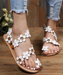 Elevate your warm weather walking wardrobe with the this gladiator toe-strap sandal adorned with fluttering floral straps.