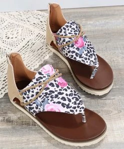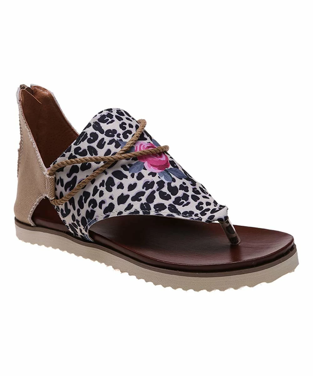 Stepped-down sandal with a splash of colorful print and a sturdy rubber sole for stability.