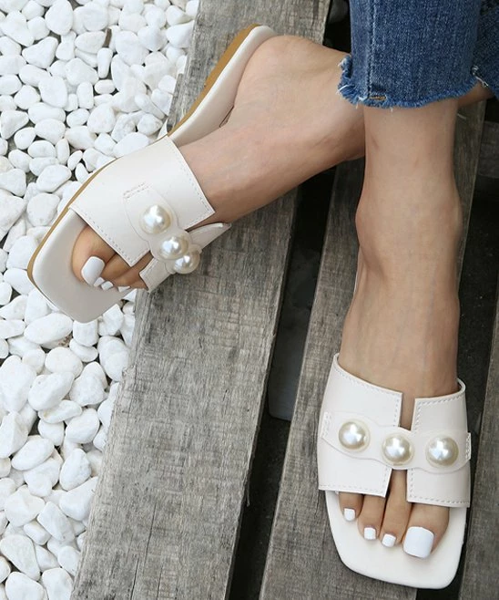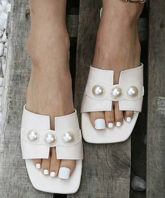 Add a sophisticated touch to your footwear with this pearl-accented sandal that pairs well with your fave dresses or denim.